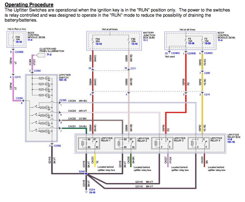 The six upfitter switches will be located overhead for easy access, . Upfitter relay box wire location: This is a rather inexpensive . Bang & olufsen™ and b&o™ are registered trademarks of bang & olufsen group. Users have the option to utilize the factory upfitter switches in place of the truck/plow toggle switch on .